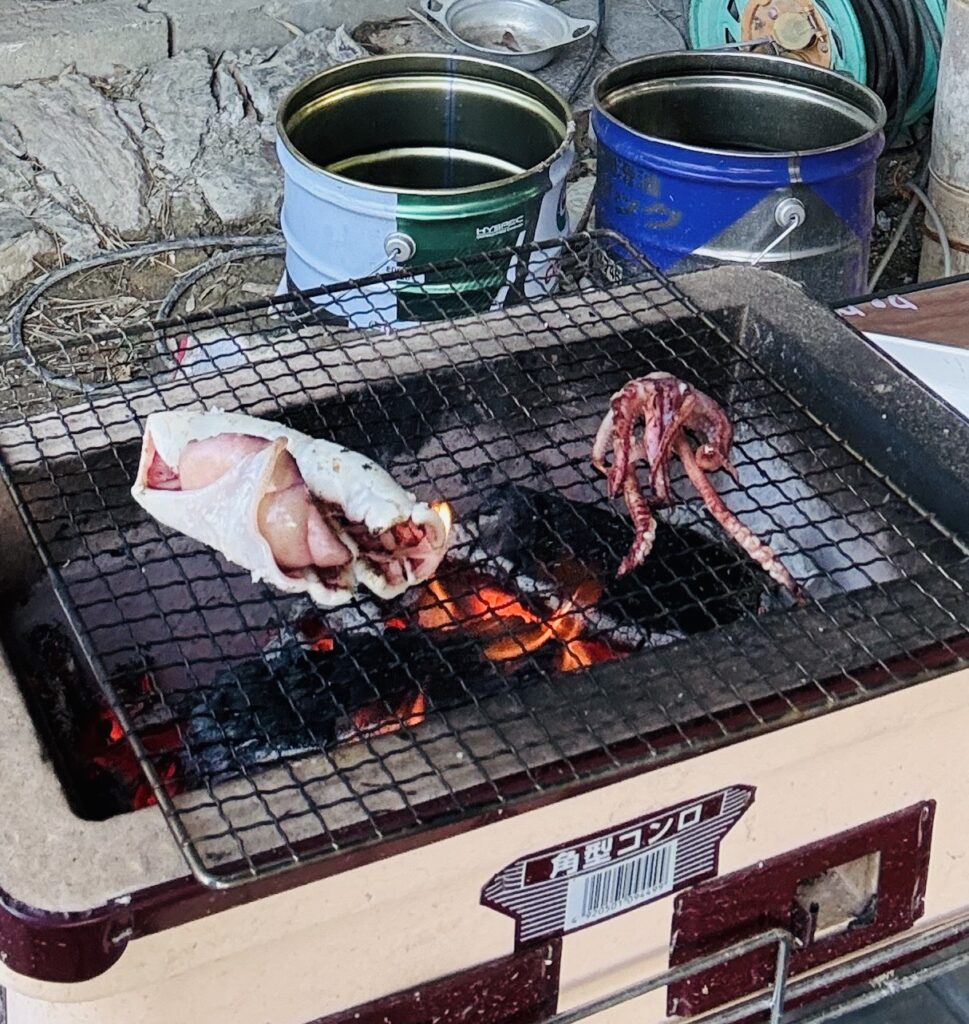 近くの川で手掴み?したサンマとイカ?を、