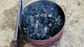 皆さん、おはようございます😃竹の半端を利用出来ないかと考えまして、良い物が出来ました♫消し炭です。消し水を用意して万全の態勢でやりました。