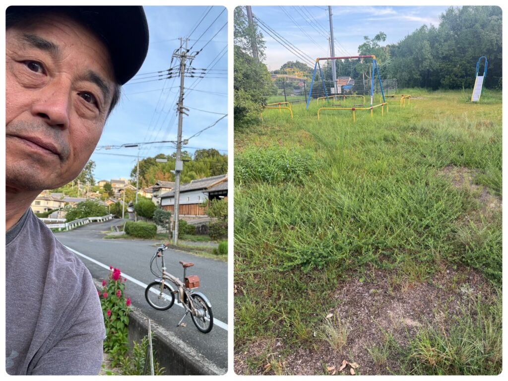 今日も自転車で出勤しましたが、近くの公園は荒れ放題です。