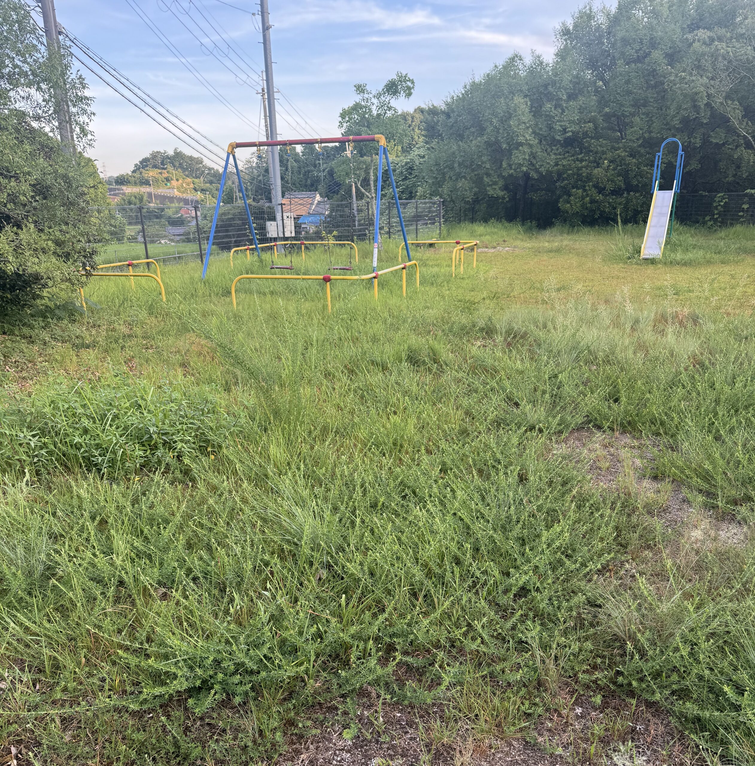 今日も自転車で出勤しましたが、近くの公園は荒れ放題です。